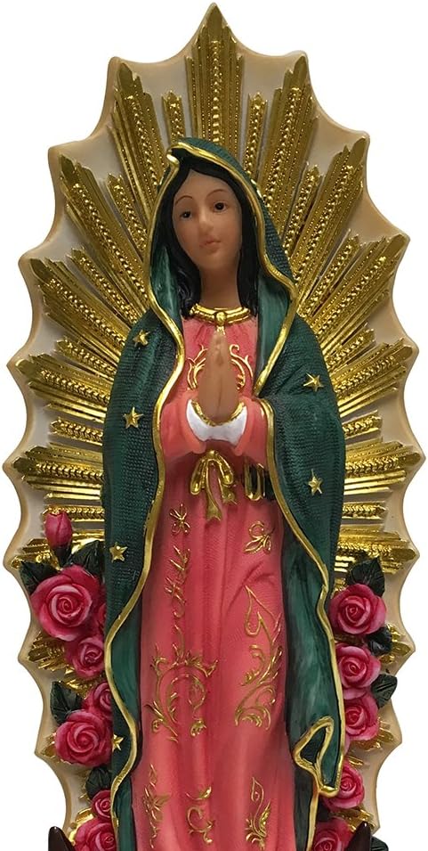 Bring a touch of sanctity and spiritual grace into your home with the exquisite Our Lady of Guadalupe statue. Masterfully crafted with a keen eye for detail, this figurine captures the essence of divine craftsmanship. Whether placed in your living room, office, or sanctified corners of chapels and church sanctuaries, it stands as a beacon of faith and a serene focal point in any setting. Each statue is carefully constructed from high-quality resin, ensuring durability while maintaining a delicate and reverent appearance. The intricate details and vibrant colors of the design add to its celestial allure, making it not only a piece of decor but a symbol of hope and faith that resonates deeply with all who gaze upon it. Available in three sizesโ12'', 18'', and 24''โthis Our Lady of Guadalupe statue offers versatility and adaptability to various spaces, large or small. It serves as a perfect centerpiece or a harmonious addition to any collection of religious art. Moreover, this figurine makes for a profoundly meaningful gift. Whether for a housewarming, a religious occasion, or just a gesture to show someone you care, it conveys a message of love, faith, and spiritual protection. Share this beautiful piece with friends, family, and loved ones, and let it be a source of comfort and inspiration in their lives as much as in yours. Embrace the beauty and spirituality of the Our Lady of Guadalupe statue in your home or gift it to bring light and love to someone else's life. This statue is not just a decorative item but a lasting symbol of faith that enriches any environment it graces.