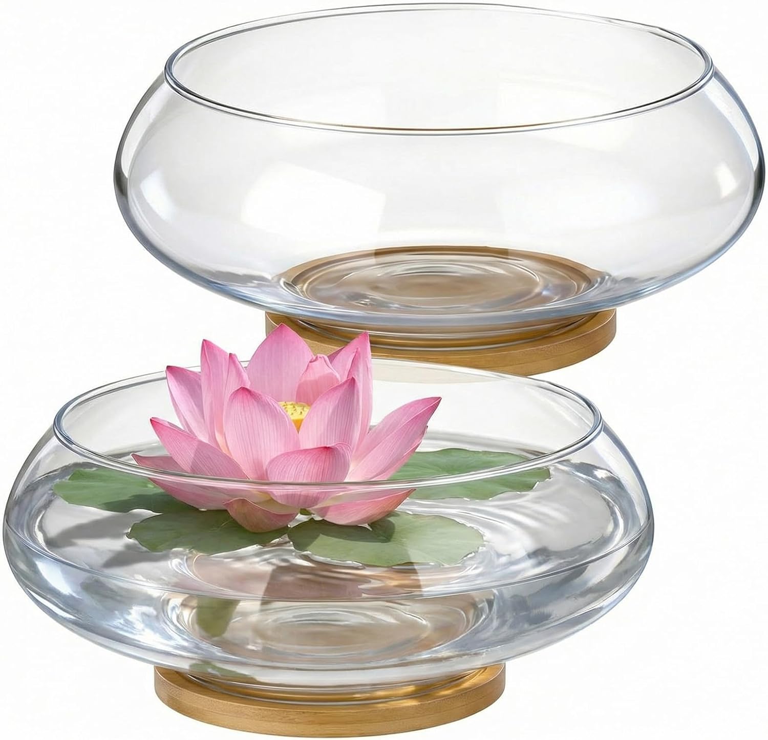 Features: Thoughtful Gifts: these bowl glass vases make an ideal choice for birthdays, weddings, or housewarming celebrations. You offer a practical and visually stunning addition to someone's home, showing you care about both functionality and aesthetics. Endless Creative Possibilities: unleash your creativity with these versatile vases! They can be applied as glass planters, bubble vases, or even as stylish bowls for floating flowers. The possibilities are endless, allowing you to customize each vase according to your style or seasonal themes. Whether you choose to fill them with vibrant flowers, aromatic candles, or decorative elements, these vases provide a delightful canvas for your artistic expression, making every arrangement a personal masterpiece. Specifications: Material: glass, bamboo Main Color: clear Size: Vase: about 10 inches/ 25 cm (diameter) Tray: about 5 inches (outer diameter) / 4.5 inches (inner diameter) Package includes: 2 x Glass vase 2 x Tray Notes: Manual measurement, please allow slight errors on size. The color may exist a slight difference due to different screen displays