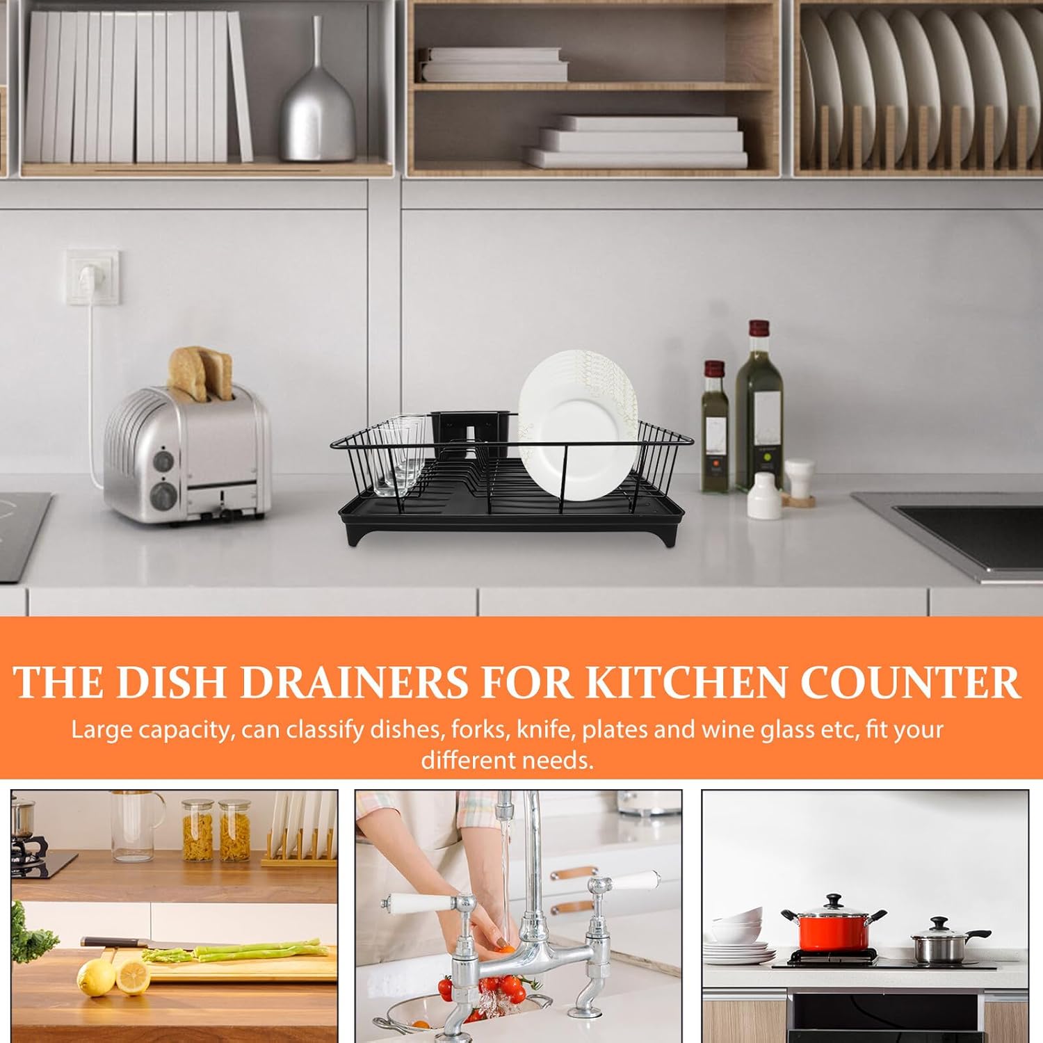 Package List 1 x bottom tray 1 x iron wire rack 1 x double-compartment box Features - Material:PP, iron -Product Info:Kitchen tableware drying rack - Size: 42.00X31.00X13.00cm/16.51X12.18X5.11in - Color: Black - Owning the and break resistance ability, very practical, with excellent texture dishes rack. - Large capacity, can classify dishes, forks, knife, plates and wine glass etc, fit your different needs drying rack for dishes. - This dish draining rack has a water draining dish to catch drips and keep your countertop dry bowl rack. - Designed with feature of draining, the dish drainers for kitchen counter keep it clean sink rack. - With the cutlery holder design, store and classify your cutlery in a better way, the dish rack is of multiple uses tableware storage rack.Goods Descriptiondish rack Featured by compartment slots and cutlery holder design, for storing different utensils securely.sink rack Are you still upset by the kitchen utensil clutter? This kitchen dish drying rack can help you to with the problem