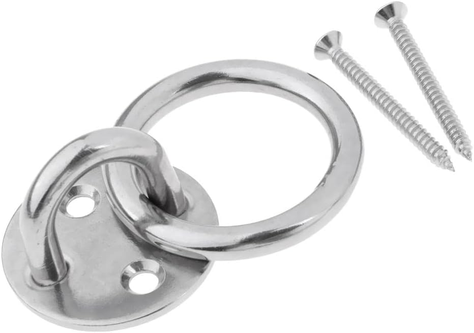 Product description Experience the robust durability of our Heavy Duty Stainless Steel Wall Mount Hooks, meticulously crafted from premium stainless steel. This sturdy construction ensures a round and glossy surface, making it inherently anti-rust and anti-corrosion for long-lasting performance. With its solid build and strong load bearing capacity, this anchor provides a reliable and secure base for various fitness and leisure applications in any setting.Designed for exceptional versatility, this wall/ceiling mount allows you to establish a secure exercise station virtually anywhere. It is an ideal anchor for your suspension trainer, enabling a wide range of workouts both indoors and outdoors. The straightforward design ensures it is and highly convenient to use, making it a perfect addition for home gyms, yoga studios, or outdoor fitness setups.The unique design, featuring a heavy-duty strip type eye plate with a round staple ring, makes this mount exceptionally versatile. It is perfectly suited for hanging a diverse array of equipment, including yoga swings, comfortable hck chairs, or intense boxing equipment. This secure mounting solution ensures that aerial silks, porch swings, or punching s are safely suspended, offering enhanced stability for all your recreational and fitness needs.For clarity, here are the detailed product specifications: Material: Stainless Steel; Color: Silver; Hanging Plate Dimensions: Diameter Approx. 50mm, Thickness Approx. 2.3mm; Round Staple Ring Dimensions: Height 27mm, Width 23.5mm, Thickness 8mm; Bolt Size: M5 x 50mm; Package Includes: 1 Piece Ceiling Mounting Plate and 2 Pieces Mounting Screws. These precise measurements ensure optimal compatibility. Manufacturer Contact Information KOSLIYA GALLERY, kosliya4th@gmail.com (9355858988