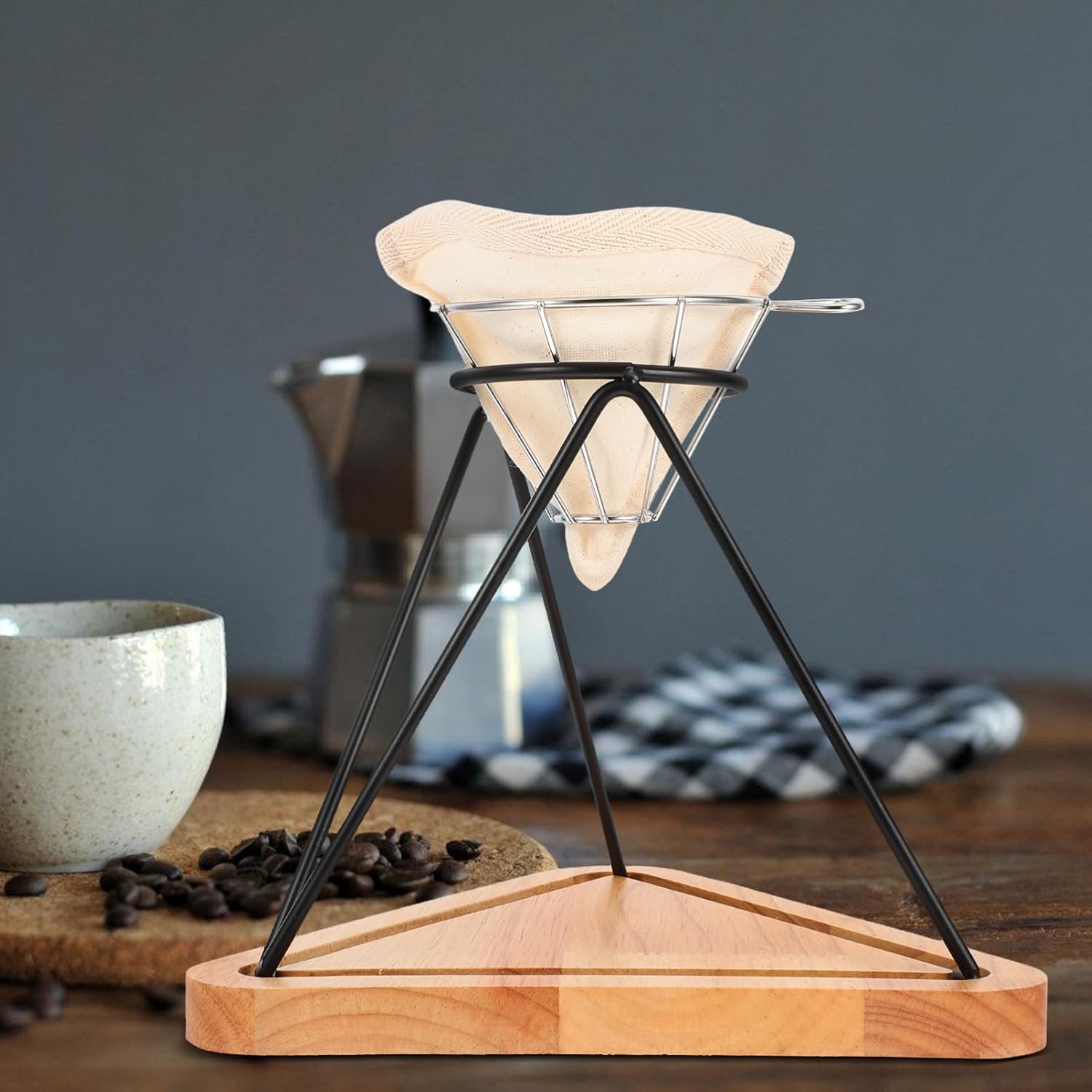 Package Include 1 x Coffee Filter Holder 1 x Stainless Steel Funnel Basket 1 x Filter Cloth Characteristics -Color: filter cup fixed holder -Easy brewing: this coffee filter holder allows you to brew rich, coffee with ease, eliminating complicated steps manual coffee brewing stand -Material:stainless steel, cloth, wood pour-over coffee holder -Versatile application: Suit for both Office and Home use, this coffee filter holder meets your coffee needs in any setting filter holder -Construction: designed for longevity, this coffee filter holder provides consistent performance for a coffee filter paper holder -stainless steel cloth and wood filtration: the stainless steel filter makes filtration of coffee grounds, resulting in filter cone holders -Size:23.50X22.00X21.50cm/9.24X8.65X8.45in coffee filter rack -Safe: the reusable stainless steel filter reduces the need for disposable paper filters coffee cone drip standGoods Informationcoffee filter holders for counter Suit for both beginners.coffee filter drip stand This coffee filter stand is a essential tool for manual coffee brewing, making a stable and secure platform for your coffee dripper.portable coffee machine tools Its stainless steel construction makes durability, while its minimalist design complements any kitchen or coffee station setup