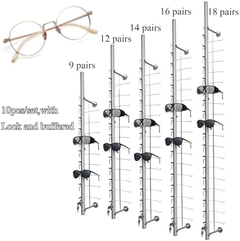 Introducing our innovative wall-mounted glasses frames with a secure locking mechanism, designed to provide a neat and organized solution for your eyewear collection. These frames not only keep your glasses safe from dust but also ensure they remain easily accessible whenever you need them. Imagine effortlessly selecting your favorite pair of sunglasses or reading glasses from a tidy display, enhancing your daily routine. Crafted from durable aluminum alloy, these frames are both lightweight and sturdy, making them a perfect fit for any space. The sleek silver finish adds a touch of modern elegance to your home decor, seamlessly blending with various styles. Whether you're looking to optimize your bathroom, bedroom, or entryway, our glasses frames are suitable for hanging mirror frames, sunglasses, and reading glasses alike. With multiple capacity options available, you can choose the perfect size to accommodate your eyewear collection. Our frames come in configurations that hold between 9 to 18 pairs, with lengths ranging from 90cm to 155cm and a consistent rod diameter of 22mm. Each set includes 10 eyeglass frames, ensuring you have ample storage for your favorites. While assembly is required, rest assured that the process is straightforward and quick, allowing you to enjoy your organized eyewear display in no time. Elevate your eyewear storage experience and keep your glasses clean, protected, and easy to find with our wall-mounted glasses frames. Embrace the convenience and style they bring to your home today!