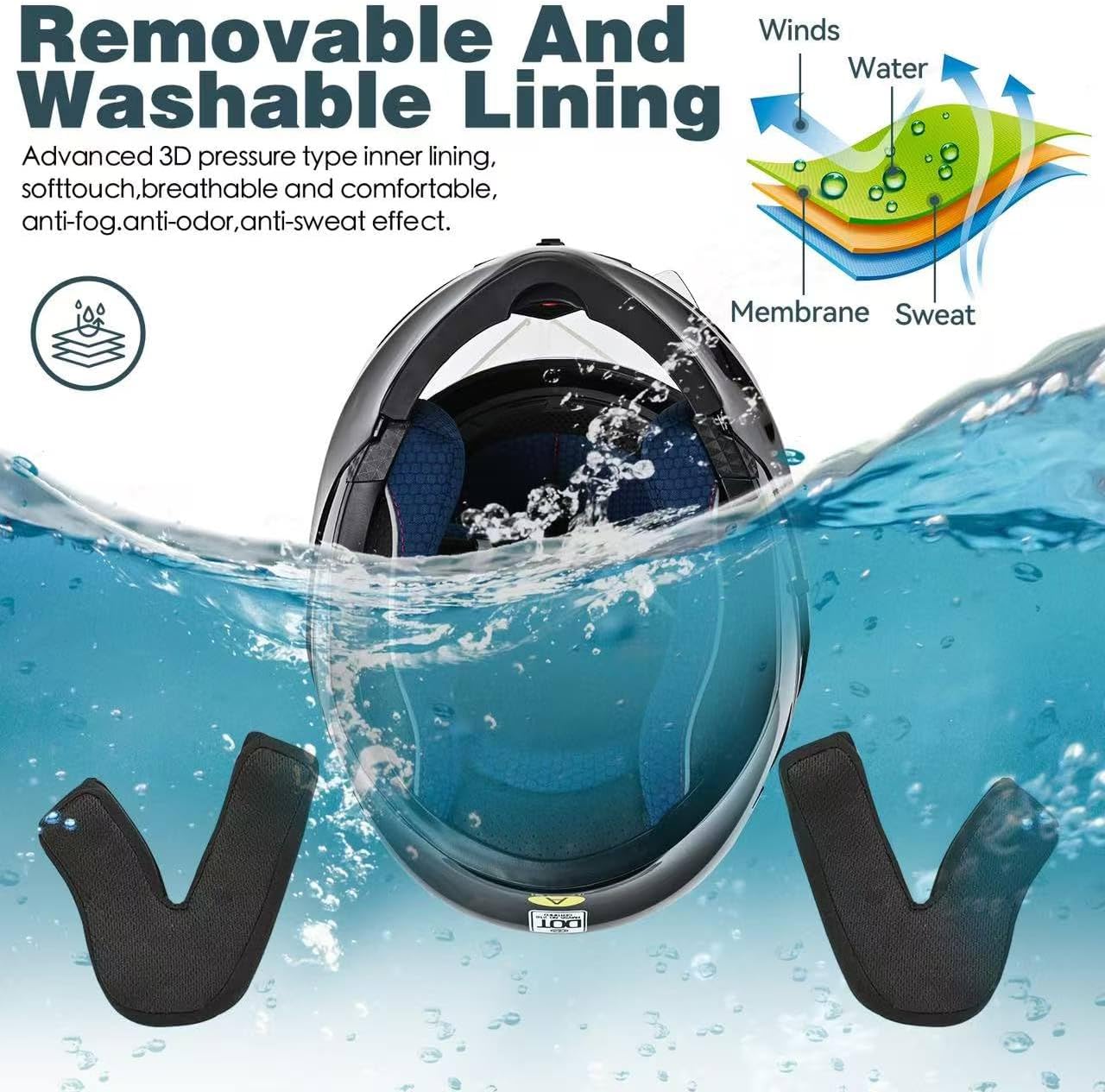 Our helmet has excellent protection. It can provide you with the greatest degree of safety when riding outdoors, so that you can enjoy riding.We are also equipped with a professional online service team to solve the problem for you the first time, so that you have no worries Product details: Type: Modular Bluetooth Helmet Material: Sturdy and durable ABS shell Buffer layer: High-strength EPS buffer layer Weight: 1600g Safety certification: DOT/ECE Scope of application: Unisex Four Seasons General Recommended Uses For:for motorcycle, cruiser, touring, bicycle and scooter Bluetooth parameters: 1. Bluetooth version:V5.0+EDR 3. Transmission distance: 10M 4. Lithium battery:3.7V/500mA 5. Charging time:3 hours 6. Standby time:about 240 hours 7. Continuous working time:about 32 hours Package: Motorcycle Helmet*1 Bluetooth headset *1 Sweat-absorbent headgear*1 If you are satisfied with my product, I hope you can give us a comment. This is important not only to me, but also to other friends who need this product. If you have any questions, please contact us in time, We will solve the problem for you within 24 hours