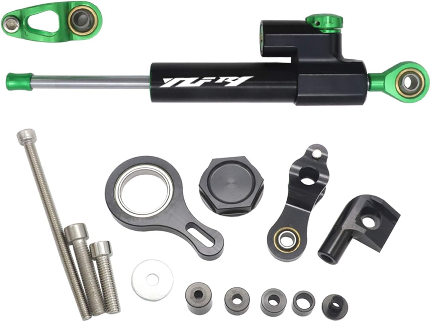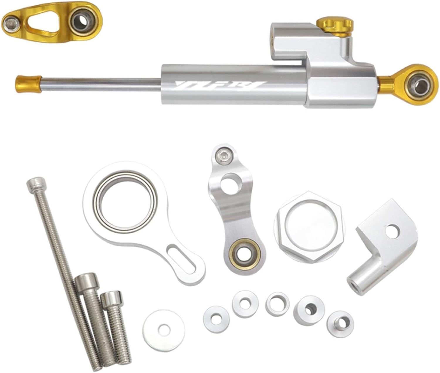 Material:AluminumCondition:100%Brand NewColor:AD Picture of ExhibitionInstallation:easy to install,no instructionsFunction:Reduce rider fatigue and eliminate headshake,improve lap timePackage Included:a PC Damper+A Bracket Kit SetDetails of the images