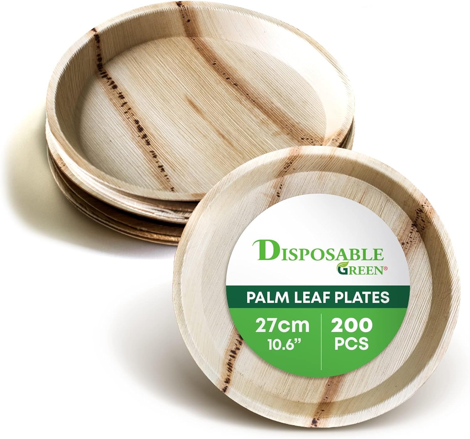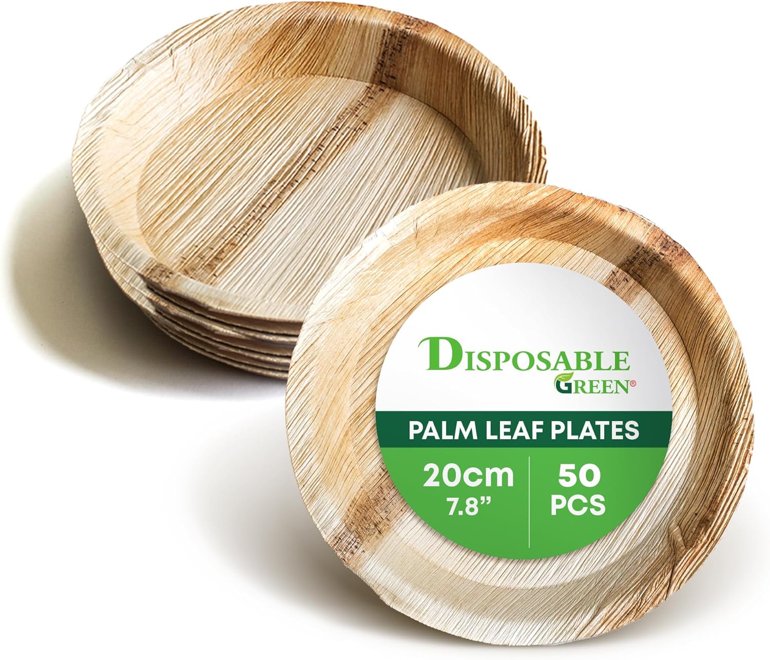 DISPOSABLE GREEN – Round Disposable Plates Areca Leaf Serving Plates Dinner Plates for Parties Weddings Catering & More Disposable Plates for Hot Food & Cold Food 15 x 2cm 50-Pcs