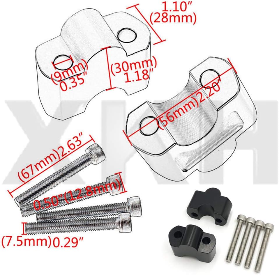 Motorcycle Aluminum Alloy Handlebar Risers Height up AdaptersFeature:Made with high quality Aluminum alloy for maximum durability.High precise CNC machining process, more safe and more reliable.Anti-rust, wear resistant and anti-corrosion, long service life.Easy to install and use, saving place.After installation, the motorcycle looks more stylish and you will have more comfortable riding experience.Specification:Condition: 100% Brand NewMaterial: CNC 6061-T6 Aluminum AlloyColor: black/silverSize: Riser 30mm/1.18 inch(refer to Picture size)Handlebar hole diameter: 22mm (7/8")Fitment: For Bimmer G310R 2017-2018For Bimmer G310GS 2017-2018