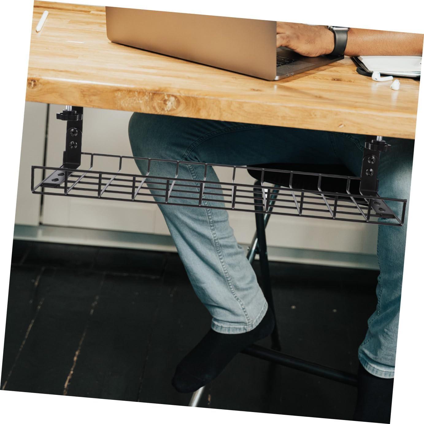 Package List 1 x Cable Management Tray Characteristics - Color: Black - Note: Adjustable, suitable for tables with thickness of 1-5cm under desk cord organizer - Material: Steel -Product Info:Wire storage rack - Size: 50.00X19.50X19.00cm/19.65X7.66X7.47in - Can keep your power strips, USB hub cables, and adapters tidy and order cable tray. - Great organizing tool for bedroom, living room, study room, office, computer room, etc desk cable management. - Simple and sturdy in structure, practical and convenient, help in organizing the cables and wires under desk cable tray. - The product installation is simple and convenient, smoothly polished, and the service life is long cord organizer storage. - Has of space to meet your cable storage needs, creative mesh design desktop cable organizer.Goods Informationunder desk cable management Are you still worried about there is no appropriate storage rack to hold your cables? Our product will solve your problem.wire organizers for cords The ingenious design makes it steady, not easy to deform, providing you an invisible cable rack for organizing the wires, easy to install it under the table, suitable for most of the occasions