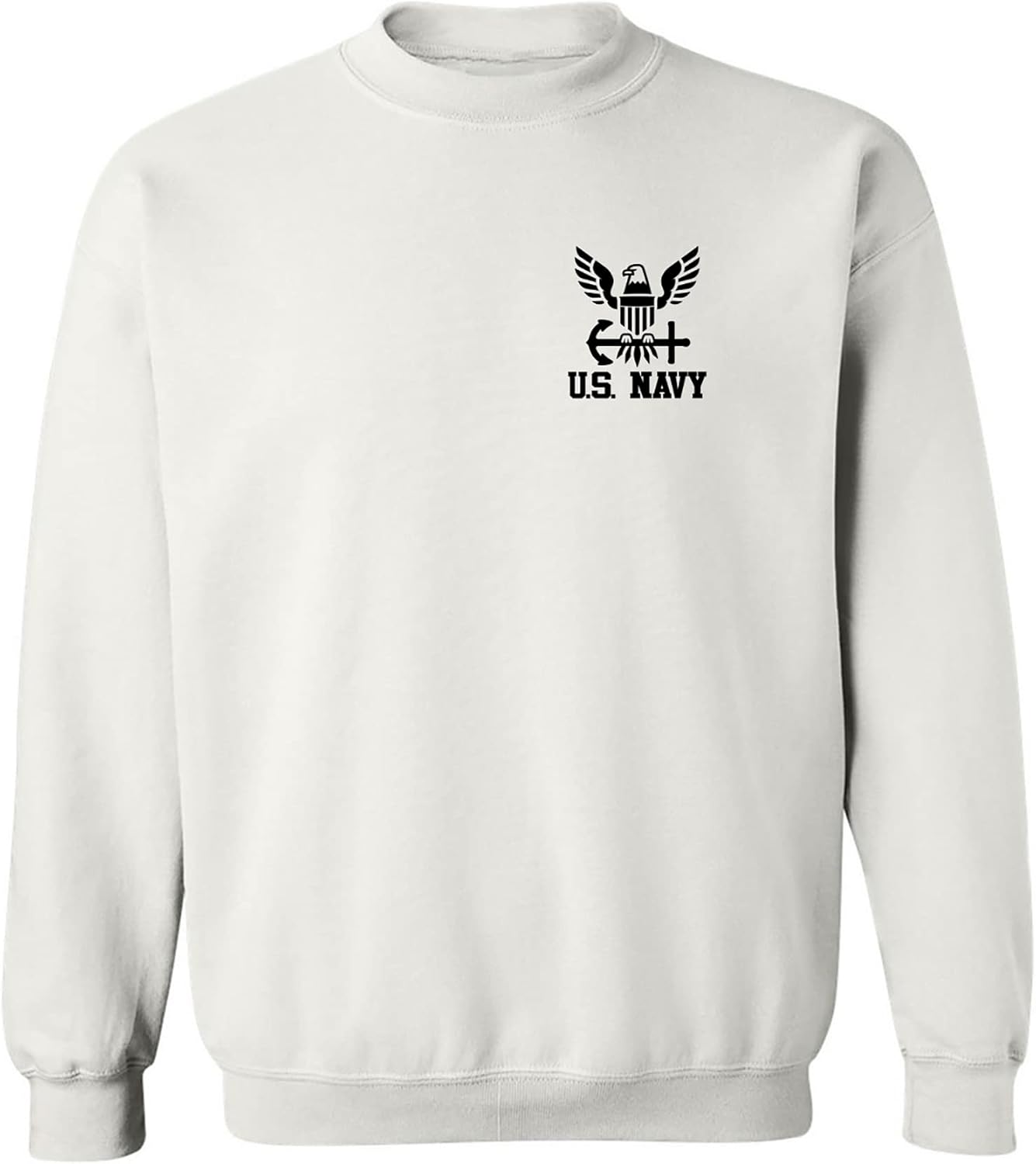 This sweatshirt features "U.S. Navy Anchor Left Chest" on the front in black ink on an Adult Crewneck Sweatshirt. Made with a comfortable blend of 50% Cotton and 50% Polyester with a double-needle stitching for extra strength, our sweatshirts are designed for both comfort and quality. This garment is officially licensed by the United States Navy. Printed in the USA on an imported garment.
